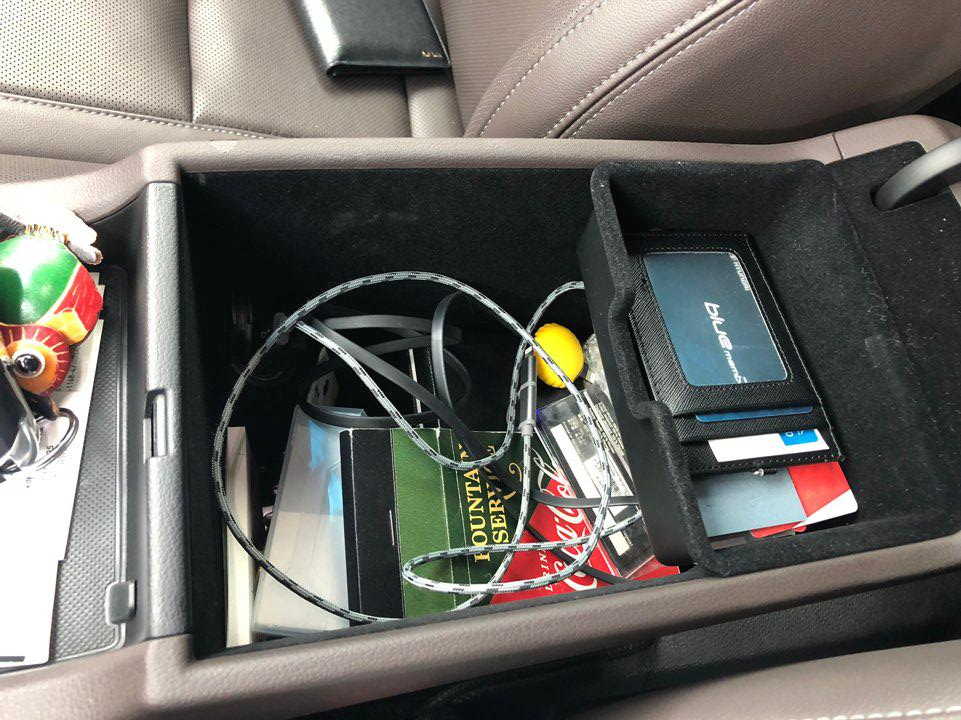 운전석 암레스트의 수납공간도 훌륭합니다. 저 동전 넣는 박스 같은 것도 들어가 있고 저 통을 들어서 뺄 수도 있습니다. 그리고 수납공간이 상당히 깊습니다. 운전석 암레스트 수납공간 안에도 시가잭이 있어서 좋습니다.